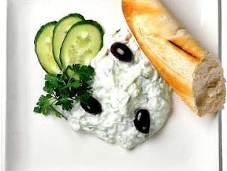 Riv gurka, salta lätt och lägg i ett durkslag så att det vattnas ur.